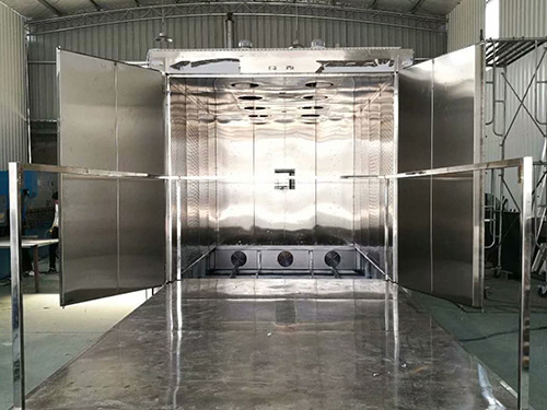 电动台车烘箱是由于所烘物品重量过重无法手动推动台车,因此可采用电动台车,电动台车就是工作室的底,可以 整个移出烘箱,方便摆放物品,电动台车底座均匀槽钢焊接制成。